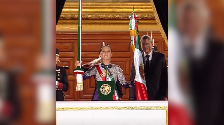 Da sacada do Palácio Nacional, diante de milhares de pessoas no Zócalo, na Cidade do México, Claudia Sheinbaum iniciou a cerimônia com o grito de “¡Viva la Independencia!”, seguido das saudações aos heróis e heroínas da luta.